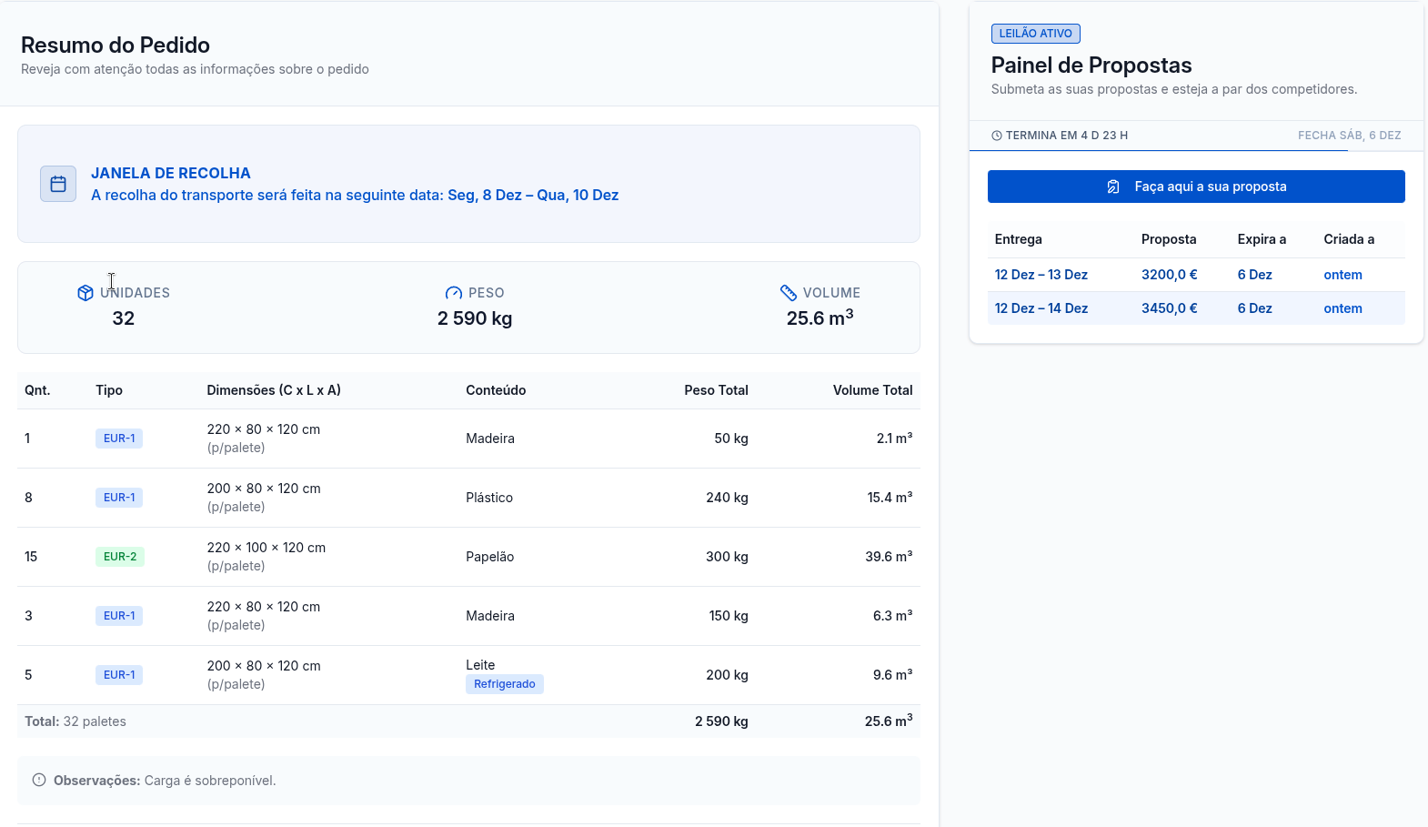 Sim. O sistema de leilão inverso cria pressão de mercado real entre transportadoras. Como as propostas são visíveis entre concorrentes, o preço tende a descer, permitindo reduções de custo que podem chegar a 25% face aos modelos tradicionais.